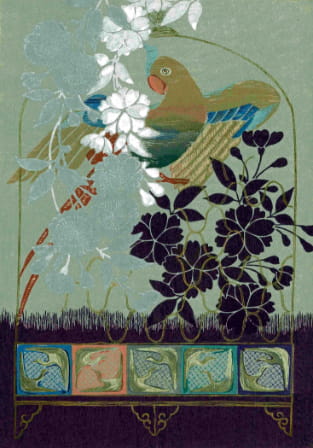 明治に入ると、京都仕入店は松坂屋のオリジナル高級呉服の制作拠点として、積極的にデザイナーの育成に努めるようになりました。そのデザイナーのなかには、染織の「型絵染」で後に人間国宝に認定された稲垣稔次郎(いながきとしじろう)もいましたが、当時の稲垣の貴重な作品の数々が京都仕入店に残されました。