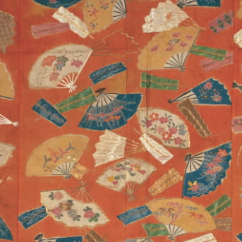 時代衣裳を収集し、染織意匠の向上と優秀呉服の制作に資することを目的に、松坂屋は昭和6(1931)年から江戸時代以前の貴重な染織品や工芸品などの収集をはじめ、その数は約1万点に及びました。収集先には、加賀前田家、洋画家・岡田三郎助、染織工芸家・岸本景春など、錚錚たる顔ぶれが名を連ねていました。