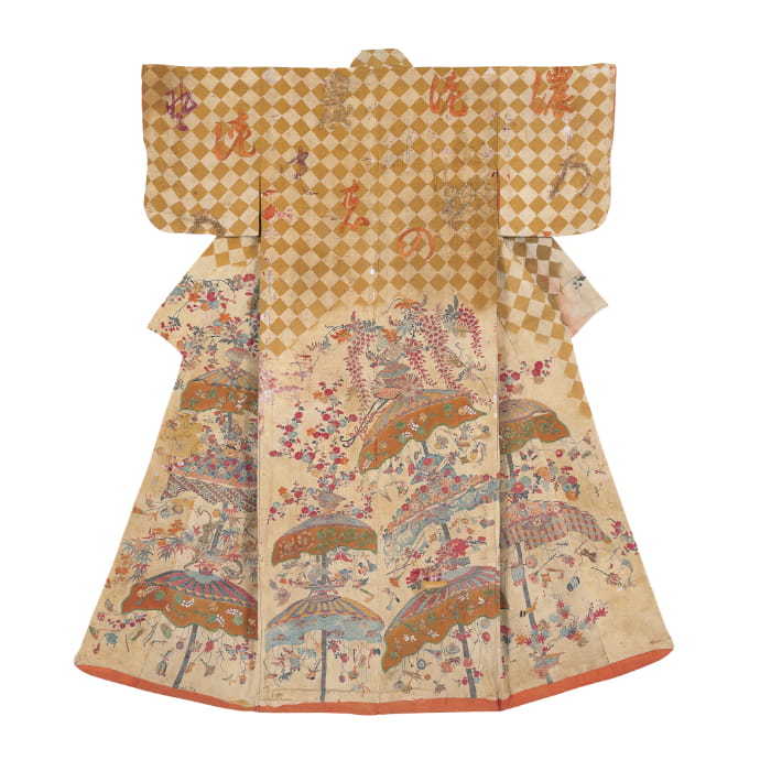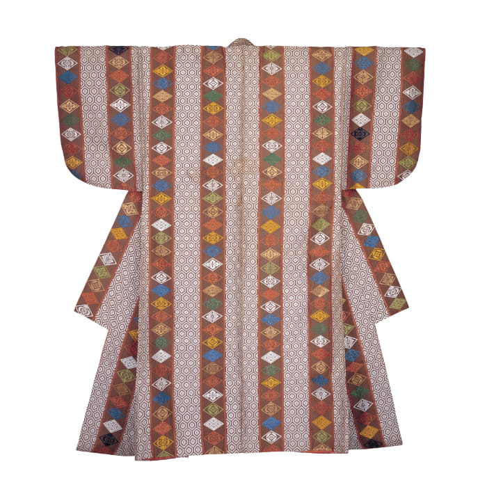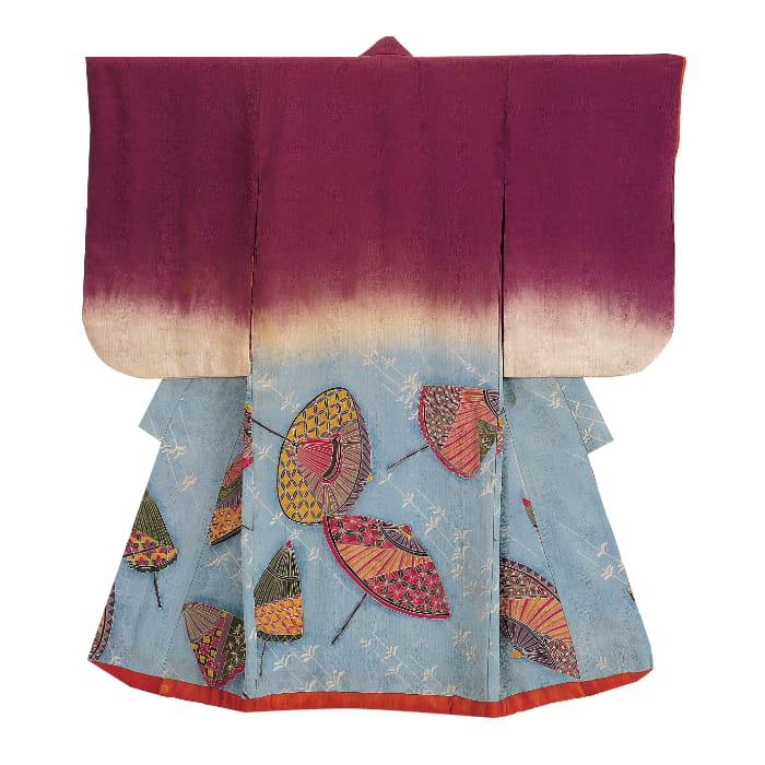松坂屋コレクションには、昭和9(1934)年に松坂屋が洋画家・岡田三郎助から譲り受けた衣裳147点、裂751点が含まれており、衣裳のうち60点にも及ぶ琉球衣裳「紅型」のコレクションは目を引きます。