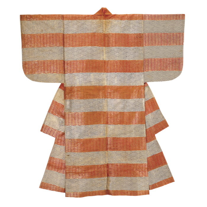 松坂屋コレクションのうち、江戸時代の小袖1点と、桃山~江戸初期の能装束4点が国の重要文化財に指定されています。そして、いずれも文化庁の重文指定理由に共通しているのは、「これほど良好な状態で残っているのは大変珍しい」という高い評価でした。半世紀以上に亘り松坂屋コレクションが大切に保管されてきた京都・染織参考館の保存レベルの高さを裏付けるものといえましょう。