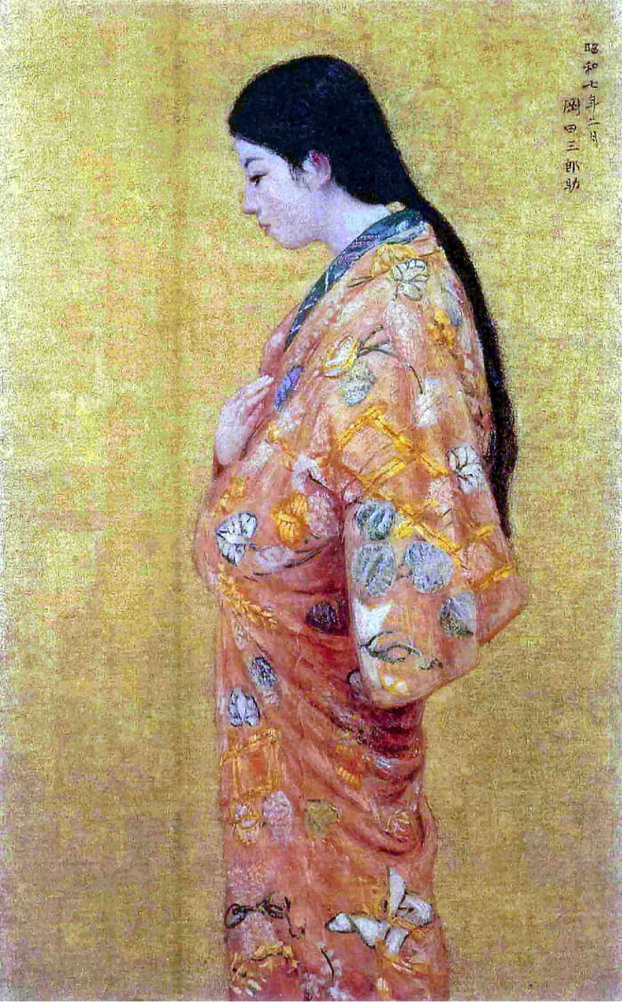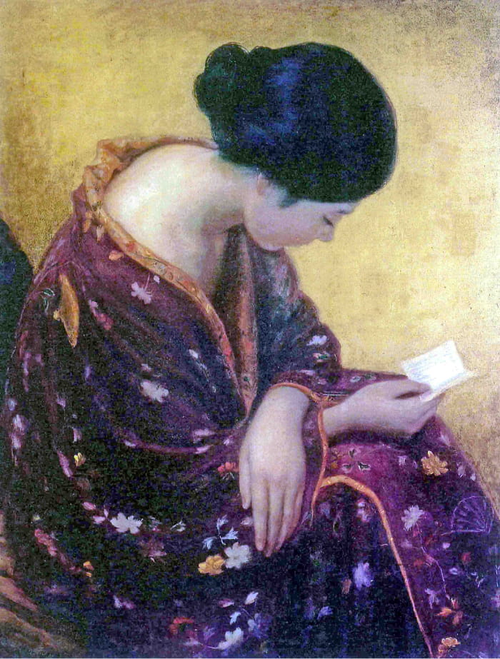 岡田三郎助は、明治から昭和初期にかけて日本の近代洋画史に大きな足跡を残した洋画壇の重鎮で、昭和12(1937)年には文化勲章を受章しています。「美人画の岡田」、「婦人画の岡田」と呼ばれ、美しい女性をモデルにした作品を好んで描きました。切手の図案に採用されている作品もいくつかあります。