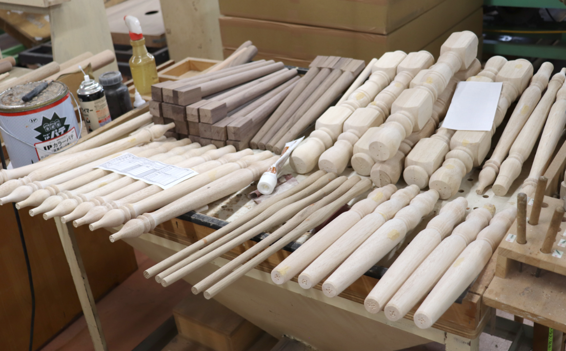 カリモク 使用している木材は、北海道や東北の国産材、マレーシアのラバートリー材(ゴムの木)、北米材などさまざまです。調達の際は、必ず現地を訪問しパートナーとして信頼できるかどうかを確認してお付き合いをしています。資材工場には現在約90種類もの木材の在庫があり、そのうち約70種類が国産材です。また、多樹種少量の広葉樹や針葉樹の調達も進めています。針葉樹は建材によく使われるのですが、輸入材との競合や住環境の変化などにより十分に活用されていない現状があります。それを暮らしの中で必ず手で触れる家具に使うことで、お客様が木に思いを馳せる機会が増えればいいなと思っています。
