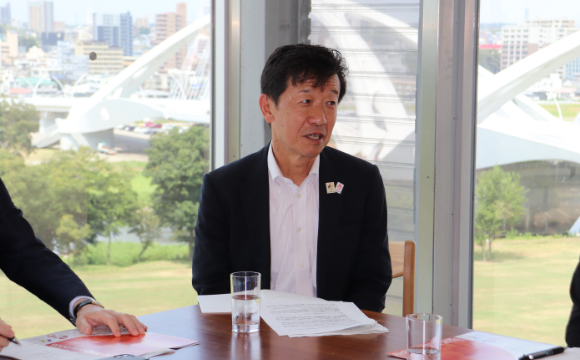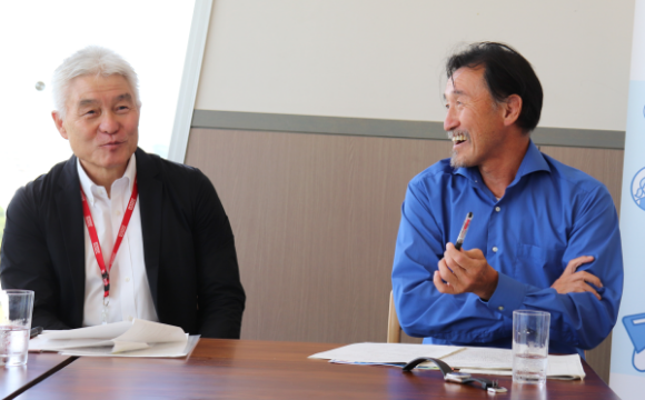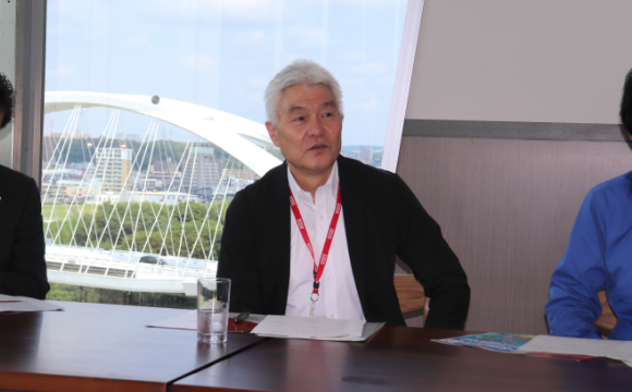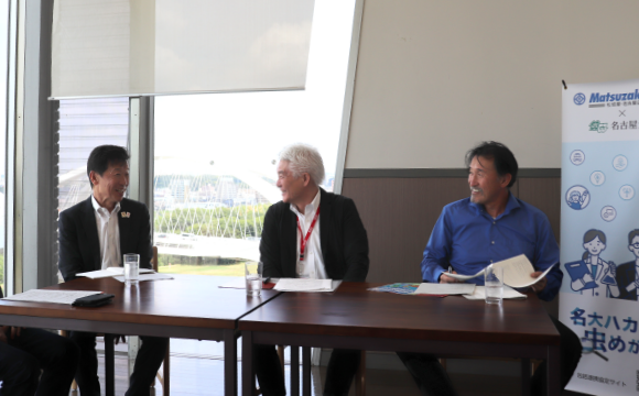 豊田スタジアムの代表取締役社長 田村さんと、名古屋大学の佐々木先生、公益財団法人愛知・名古屋アジア・アジアパラ競技大会組織委員会の事務局次長 猪股さんが座談会を行いました。