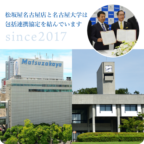「百貨店を通して豊かな文化を地域に還元する」を目的に2017年に連携を開始した松坂屋名古屋店と名古屋大学。このページでは、SDGsをテーマとした“みらいメッセージ”をはじめ、科学や社会ついてのさまざまな活動をご紹介することで、皆様に“新しい未来”をお届けしています。