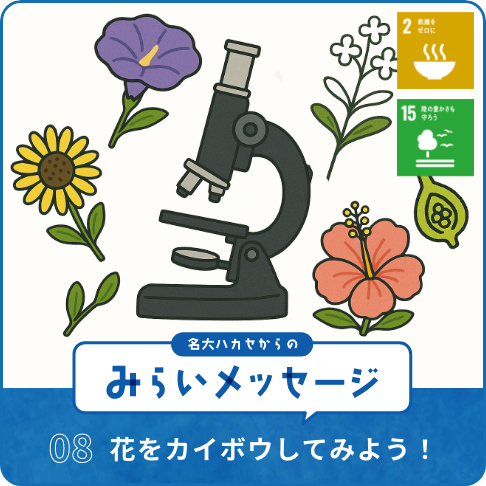 日々研究をしている中で「植物は賢いなあ」と感じることがよくあります。皆さんは普段、花を観賞したり種や実を食べたりしながら植物と関わっていると思いますが、実は植物は生存戦略を持っていて、賢く生き抜いているのだということをぜひ知ってもらいたいです。道端に咲いている花も、生存戦略によって生きているのです。