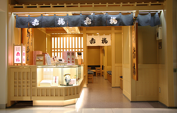 赤福餅の独特な形は、伊勢神宮神域を流れる五十鈴川のせせらぎをかたどり、餡(あん)につけた三筋の形は清流を、白いお餅は川底の小石を表しています。 季節限定品として、夏期は「赤福氷」、冬期は「赤福ぜんざい」もお召しあがりいただけます。