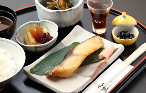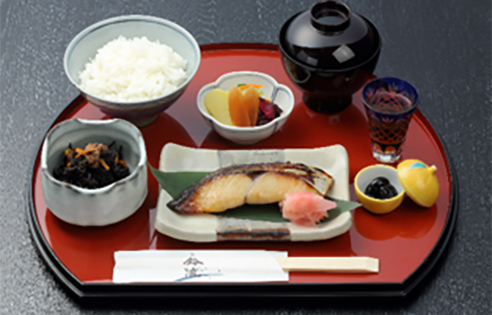 粕はみりん粕を使用していますので、ほんのり甘い香り豊かな焼き魚に仕上がります。おいしい焼き魚を味わっていただきたく「新潟牧産コシヒカリ」のご飯、赤だし、小鉢、漬物など焼き魚を引き立てる各地の食材にもこだわった定食をご用意しています。