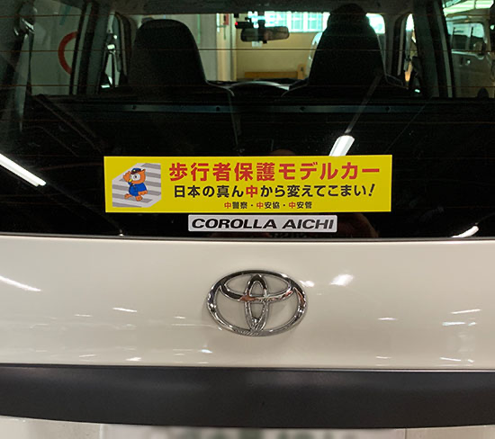 2019年7月、松坂屋名古屋店は愛知県中警察署より「安全運転管理モデル事業所」を委嘱されました。約152台の社用車に「歩行者保護モデルカー」のステッカーを貼付し、他の車両の見本となる走行と「横断歩道は歩行者優先」を呼びかけることで、地域の皆さまの安全を守ります。