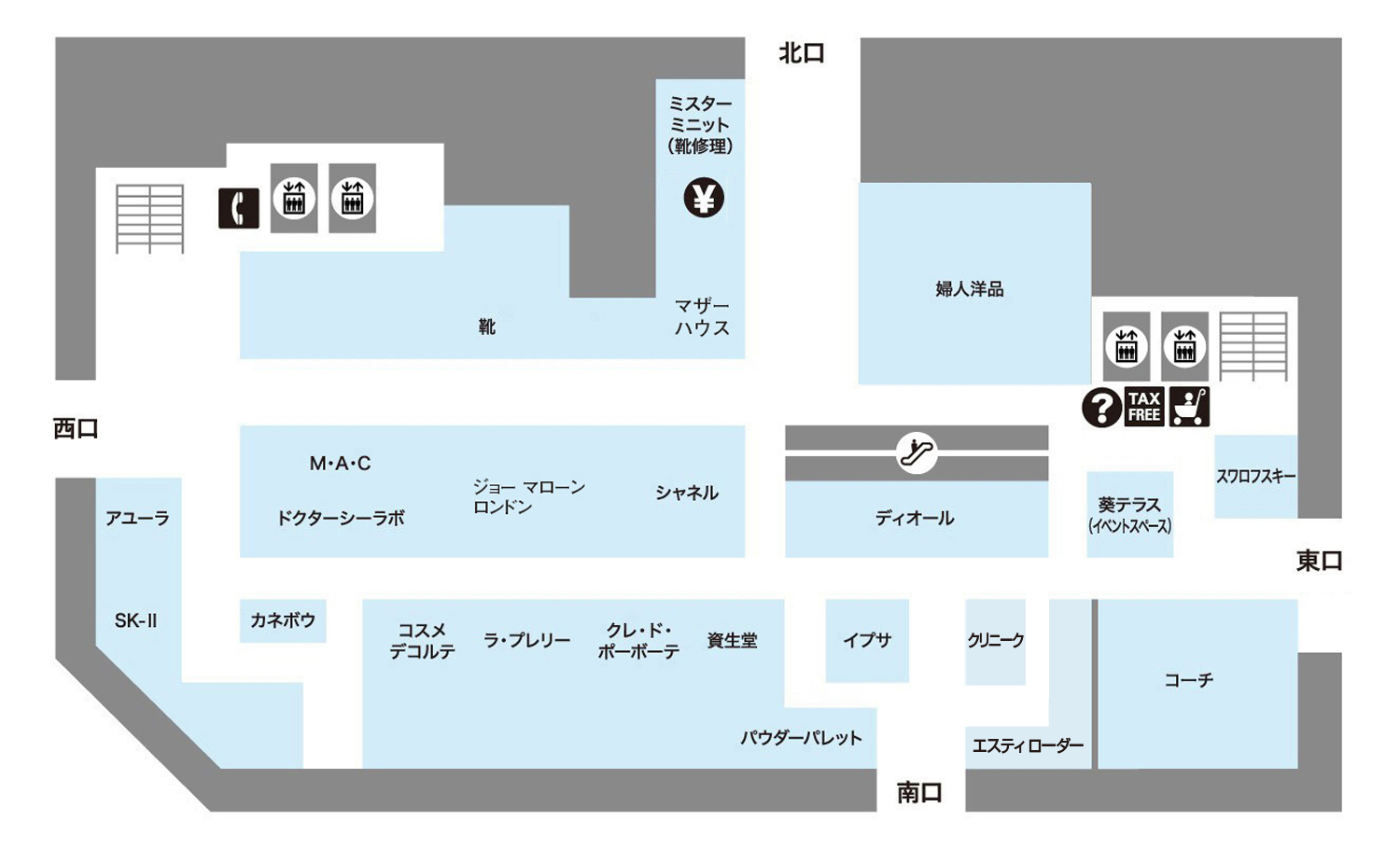 本館 1F 化粧品/アクセサリー/婦人雑貨/婦人・紳士靴