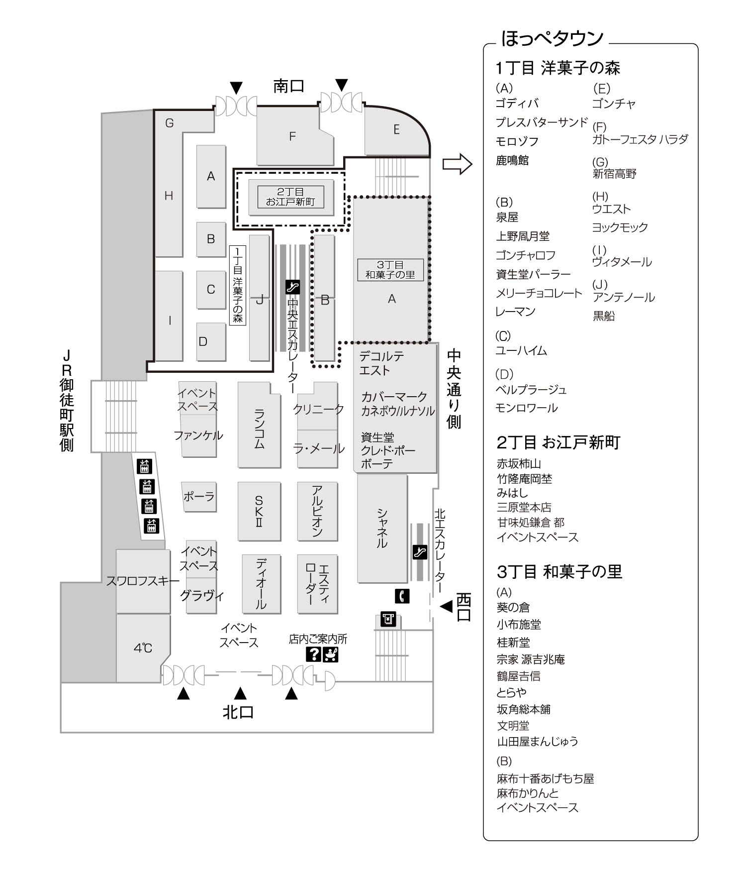 1F 化粧品/アクセサリー/ほっぺタウン (和・洋菓子)
